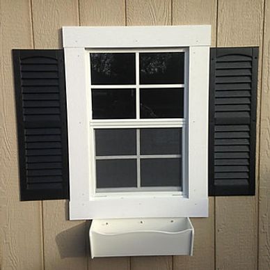 Vinyl shutters are Available in White, Black, Green, Maroon, or Blue.