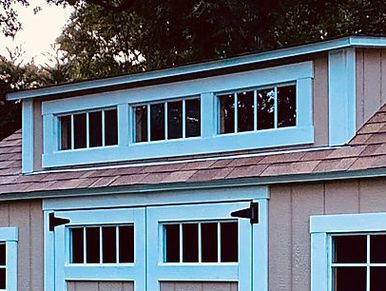 A dormer can add charm to larger sheds. The dormer roof can be added to shed 10x12 and larger. The roof pitch must be raised to a 33 degree angle and it can only fit on sheds 10ft wide or larger.